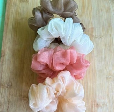 Trendy, sheer organza scrunchies for a stylish and delicate vibe.